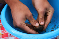 Sinora non c'é stato laboratorio del collettivocontorti in cui non ci si sporcasse le mani di terra! e per il packaging delle bombe... cosa meglio delle eco-sostenibili e biodegradabili (nonché reciclate) confezioni delle uova?